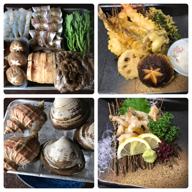 2019年3月21日 天ぷら盛合せ・つぶ貝他4分割