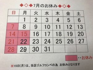 ◇◆◇7月のお休み◇◆◇