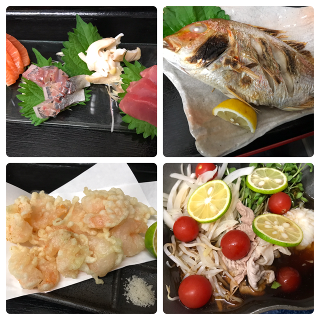 お造り盛合せ(本まぐろ赤身・サーモン・本さわら・バイ貝)