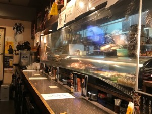 店内 カウンター席と厨房の間、テーブル席にシールドしています