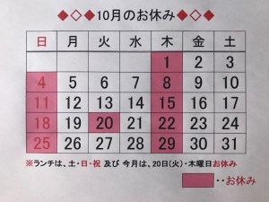 ◆◇◆10月のお休み◇◆◇