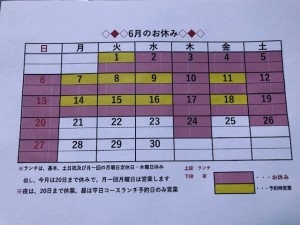 尚、昼は、平日(木曜日除く)、コースランチのご予約があった日のみ営業致します
