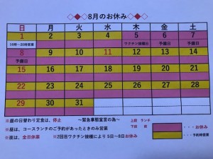 ※本日8/1(日)は、16時~20時営業いたします