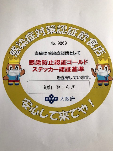 当店は、ゴールドステッカーを取得していますので、大阪府の要請通り、