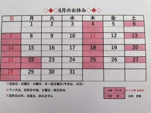 定休日:日曜日・木曜日・月一回月曜日(今月は、22日)