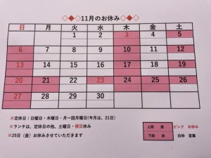 ◇◆◇11月のお休み◇◆◇