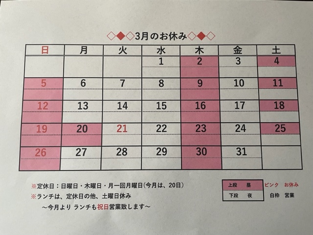 本日22日は、月一回の月曜日定休日です&明日23日(火・祝)お休みさせていただきます