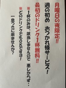 尚、月曜日の夜のサービスは、どちらか一つになります