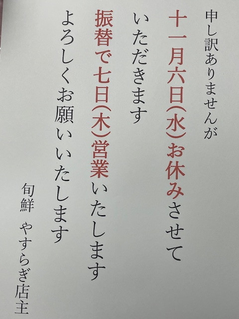 11月のお休みと 振替営業のお知らせ