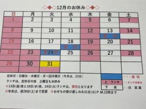 2024年12月休み