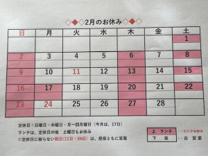 2月のお休み