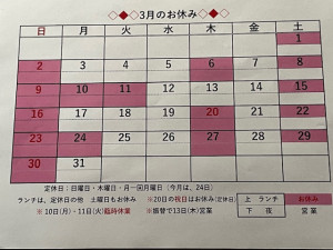 定休日:日曜日・木曜日・月一回月曜日(今月は、24日)