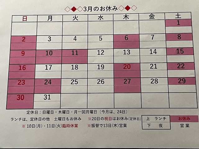 本日22日は、月一回の月曜日定休日です&明日23日(火・祝)お休みさせていただきます