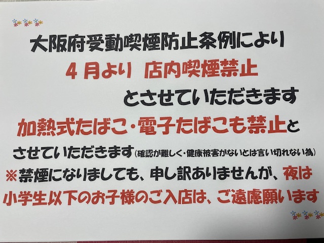 4月のお休みと 4月より店内喫煙禁止のお知らせ