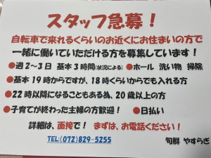 急ぎ スタッフを募集します!