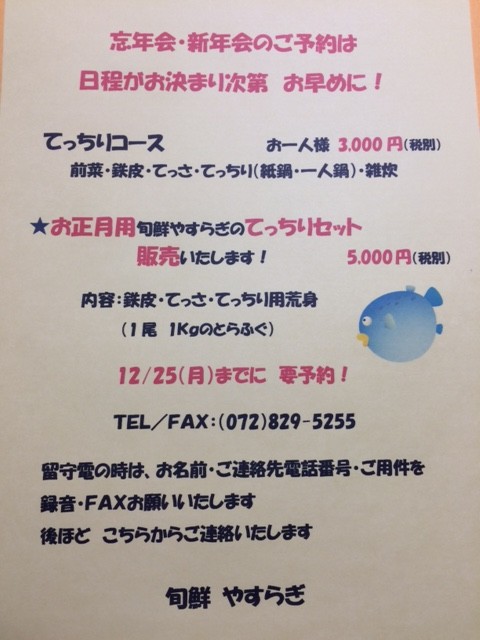 • てっちりコース・お正月用てっちりセット販売のご案内